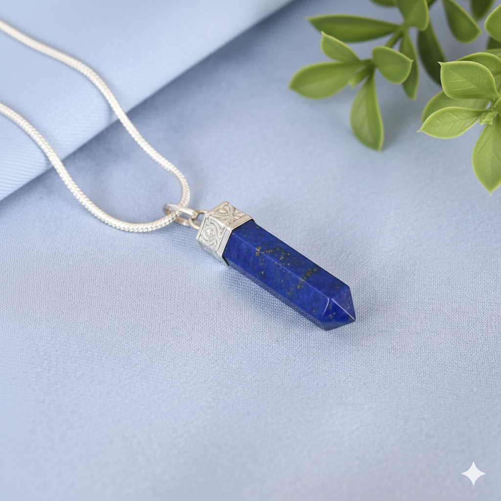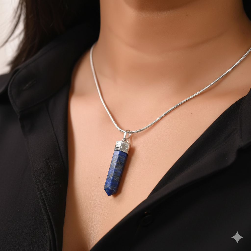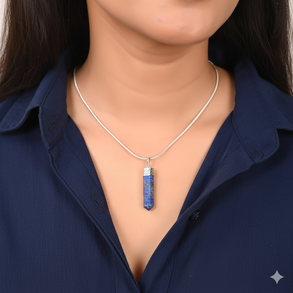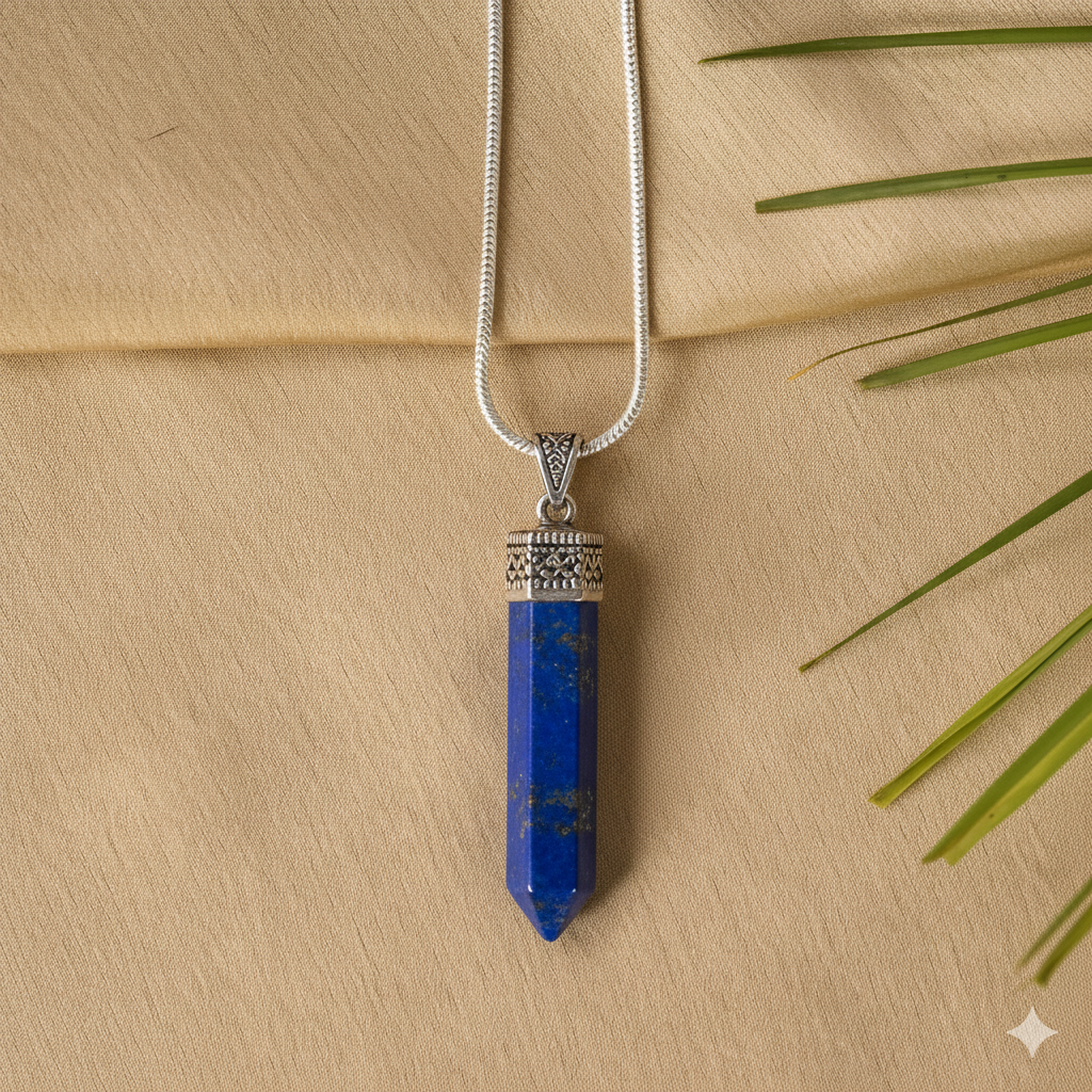 Lapis Lazuli, a mesmerizing deep blue gemstone with shimmering golden flecks, is a timeless symbol of wisdom, truth, and self-awareness. Admired since ancient civilizations for its celestial beauty and spiritual power, this stunning Lapis Lazuli Pencil Pendant adds a touch of elegance, confidence, and meaning to your jewelry collection.